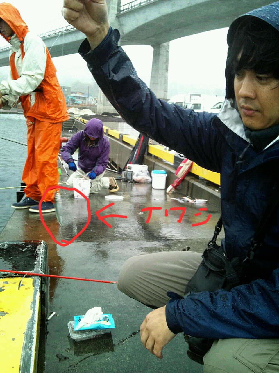 隣のおじさんはアジ狙い、どうやら朝まずめカレイ狙いと夜のアジ狙いが混じってオールナイト満席になってるみたい(゜ロ゜)