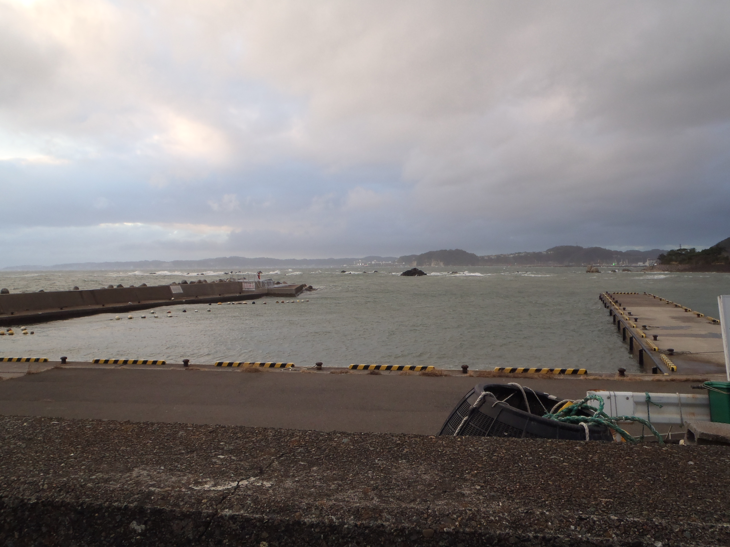 早川港の方は風がうまく遮られていて、釣りはできそう!