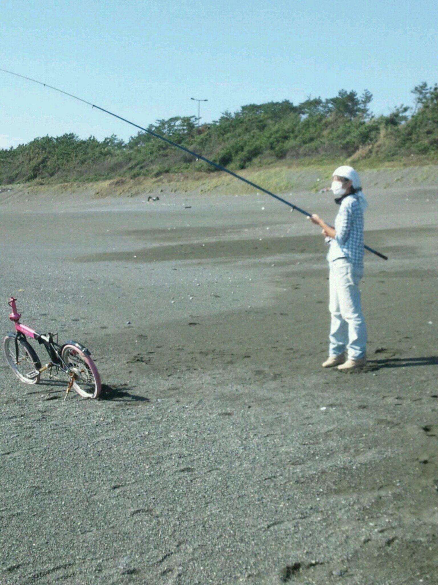 さとみちゃんが投げ釣りで13時の開始から17時終了まで、コンスタントに7匹釣りました(^-^)