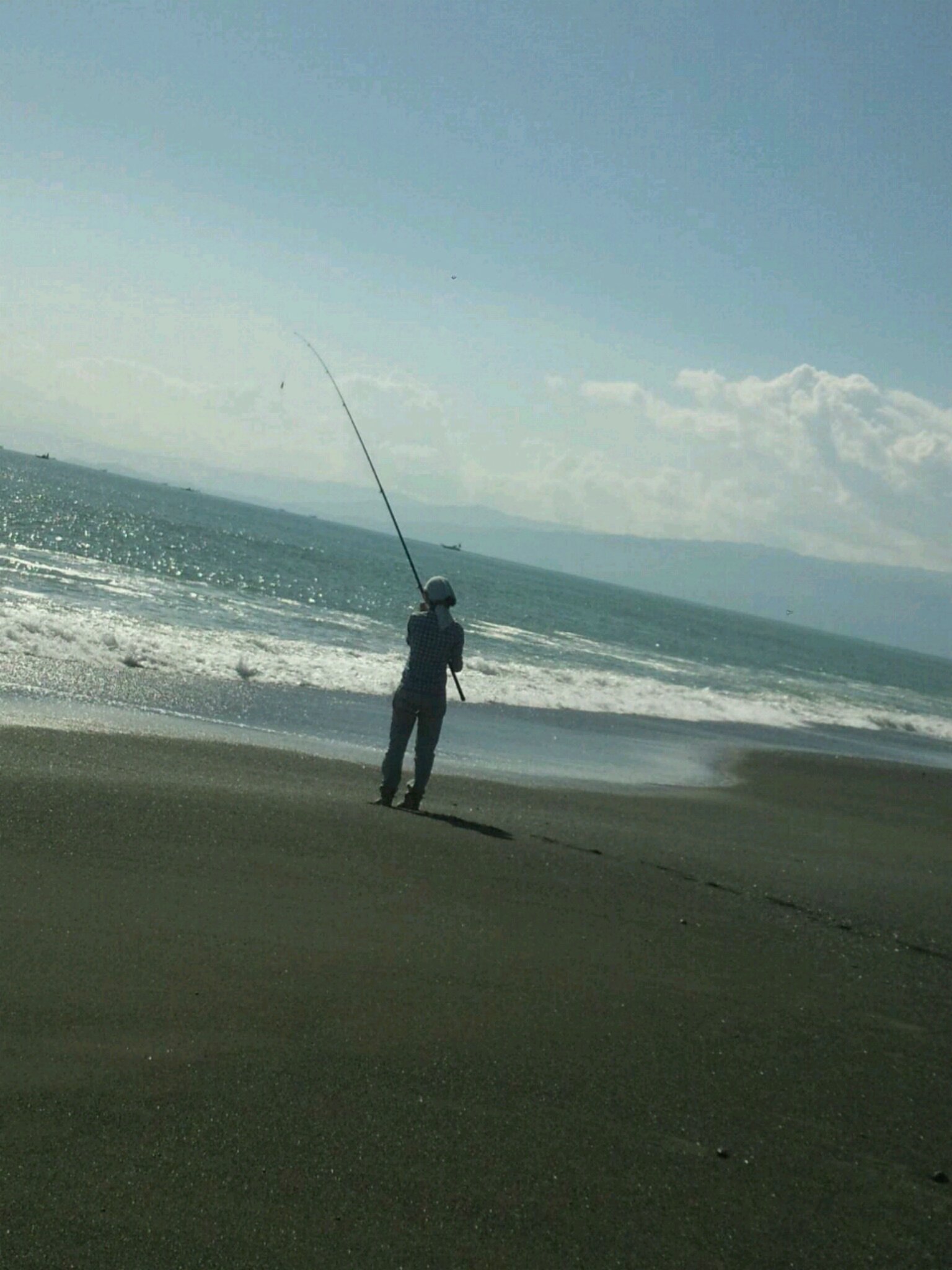 すっかり夜が明けて、投げ釣りに転向、久々ヒットで