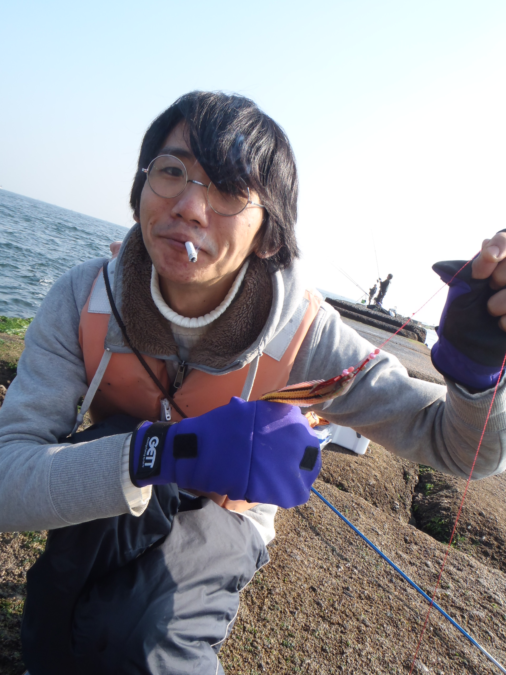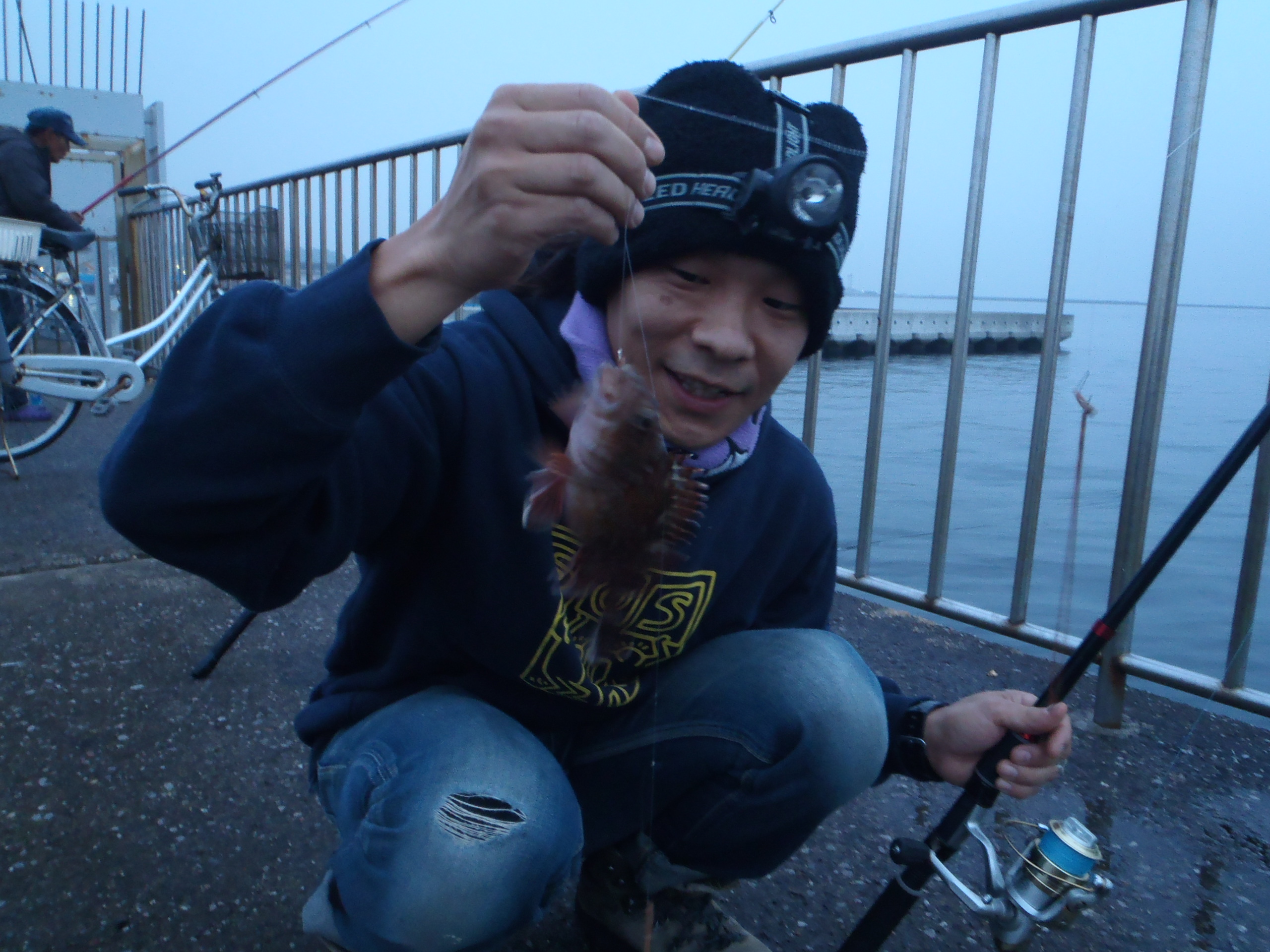 前回うみかぜ公園で一人カサゴやらメバルやら釣ってたから、運つかっちゃったかな~とかも思いつつ、