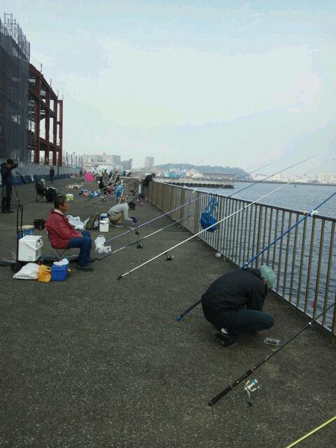 オレはちゃっかり本隊のスペースに入れるかなぁーくらいで行ってみると、なんと4時過ぎで公園の海釣りスペースにちょうど入れないかなぁくらいな間隔で釣り人満席状態(>_<)