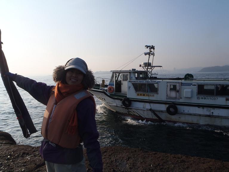 金沢八景、村本海事さんの船で、野島防波堤へ