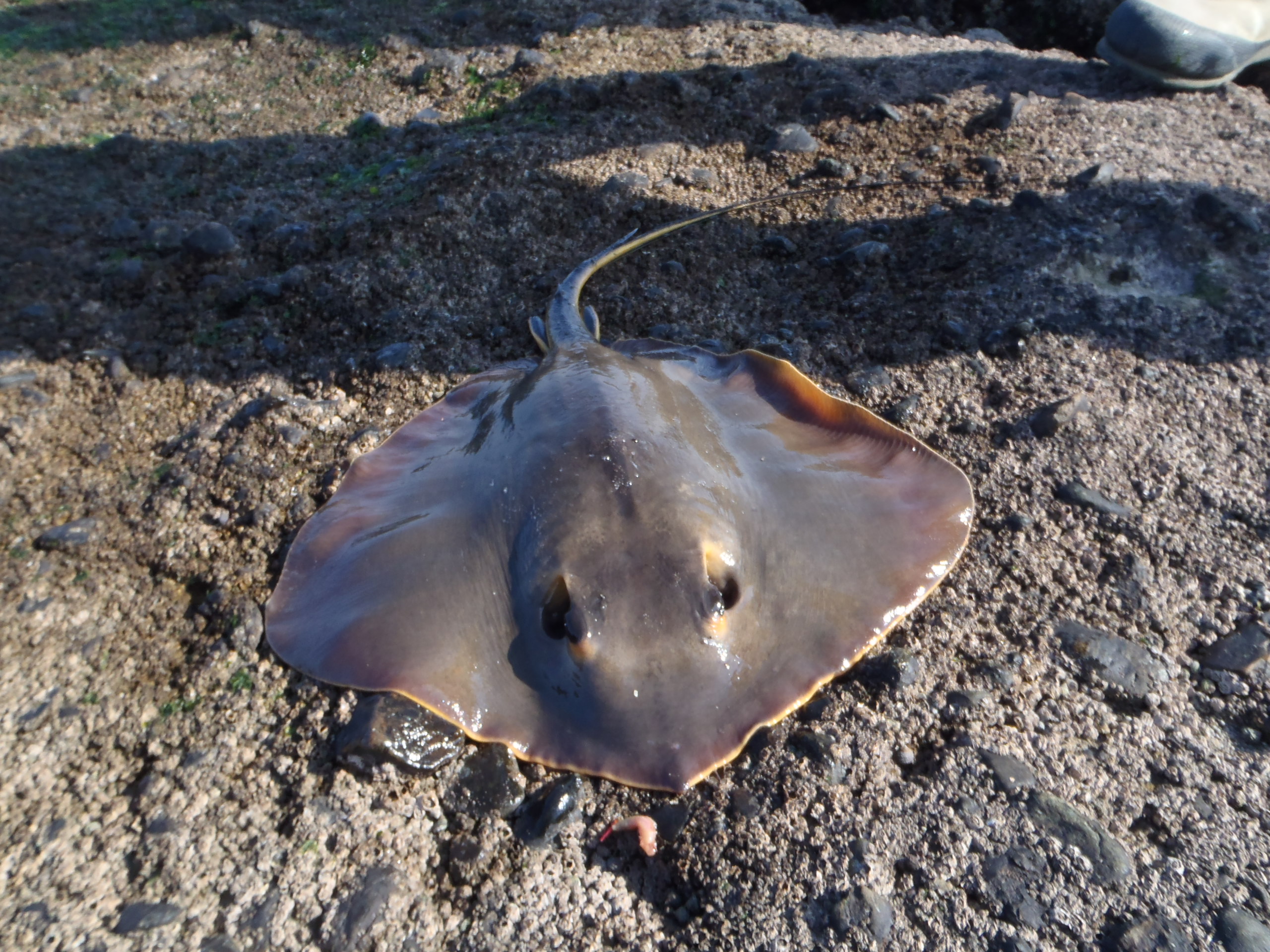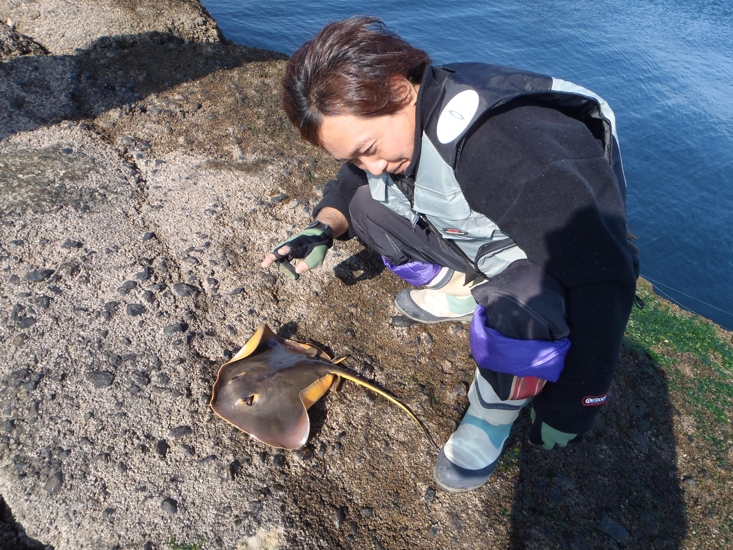 伊藤さんが今まで釣った中では小さい方だとか。しっぽの付け根の毒針に気をつけてパチリ!!